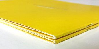 The printed paper is made in double size format, gets two staples in the middle and is then folded. We recommend this method when the document consists of relatively few pages (max. 60). We also offer the new ‘squarefold’. With squarefold the spine is squeezed into a square so that the brochure does not open. The square spine makes it similar to a book.